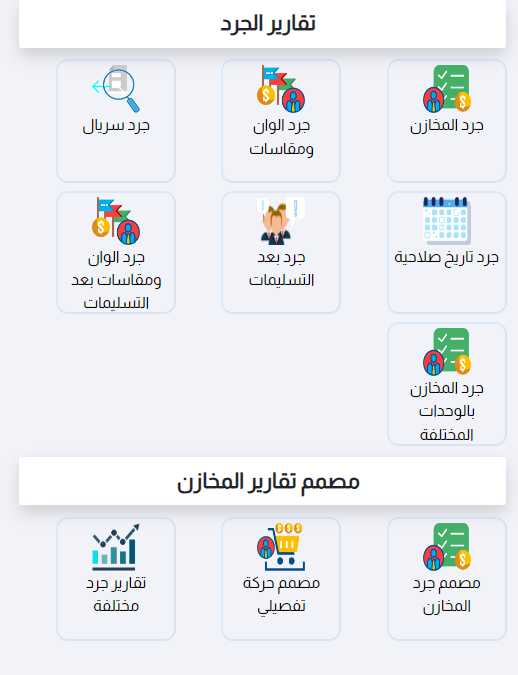 - يقوم بجرد المخزون تلقائيا حسب المدة الزمنية المحددة كما يمكنك تحديد منتج واحد أو مجموعة منتجات واستخدام أكثر من طريقة لجرد المخزون كالجرد المستمر والجرد الدوري ومراقبة المخزون سواء كانت رقابة كميات المخزون أو جودة المخزون أو تكلفة المخزون.