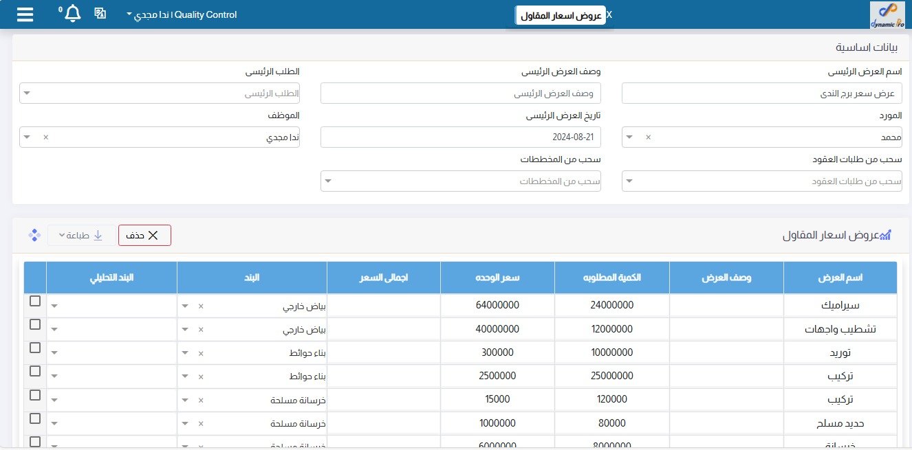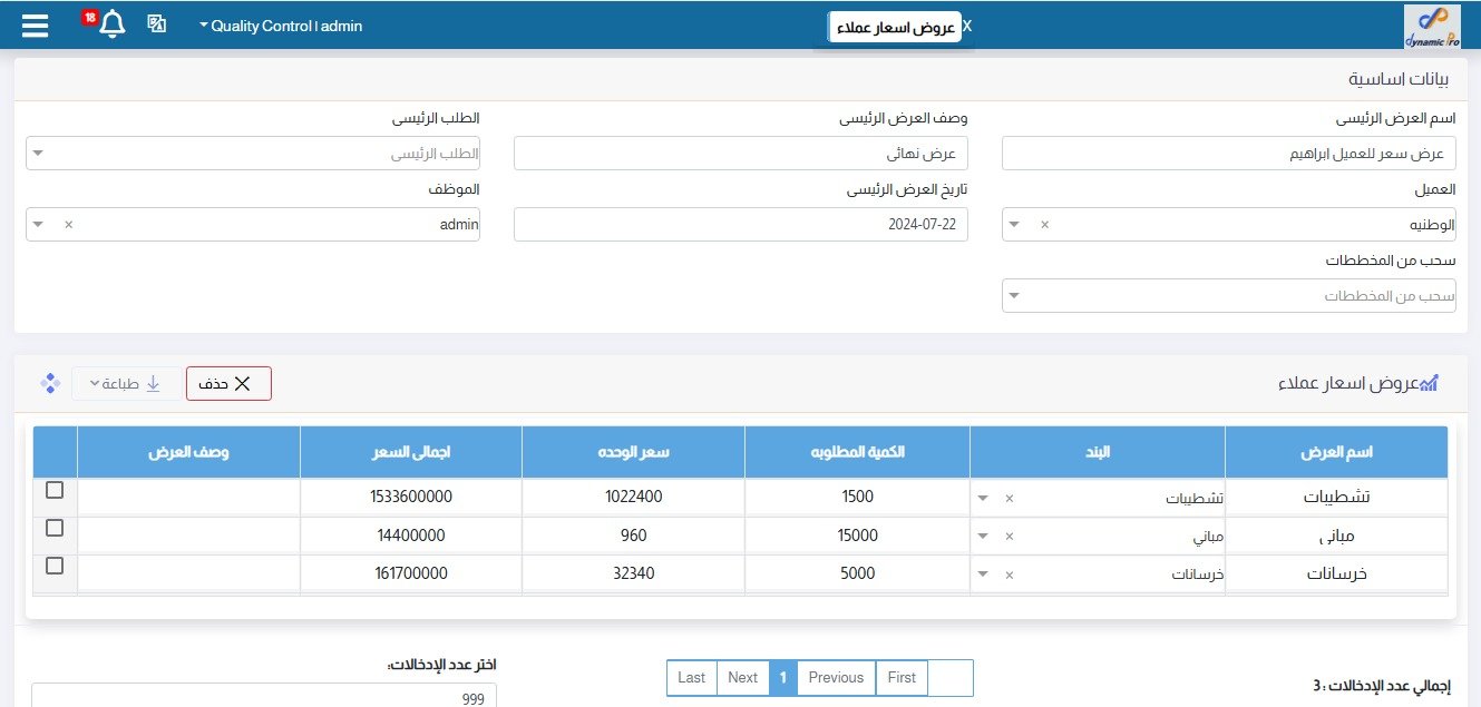 إصدار عروض الأسعار بعد الانتهاء من مرحلة التسعير وإعتمادها وإرسالها إلى العميل من خلال النظام بشكل مباشر.
